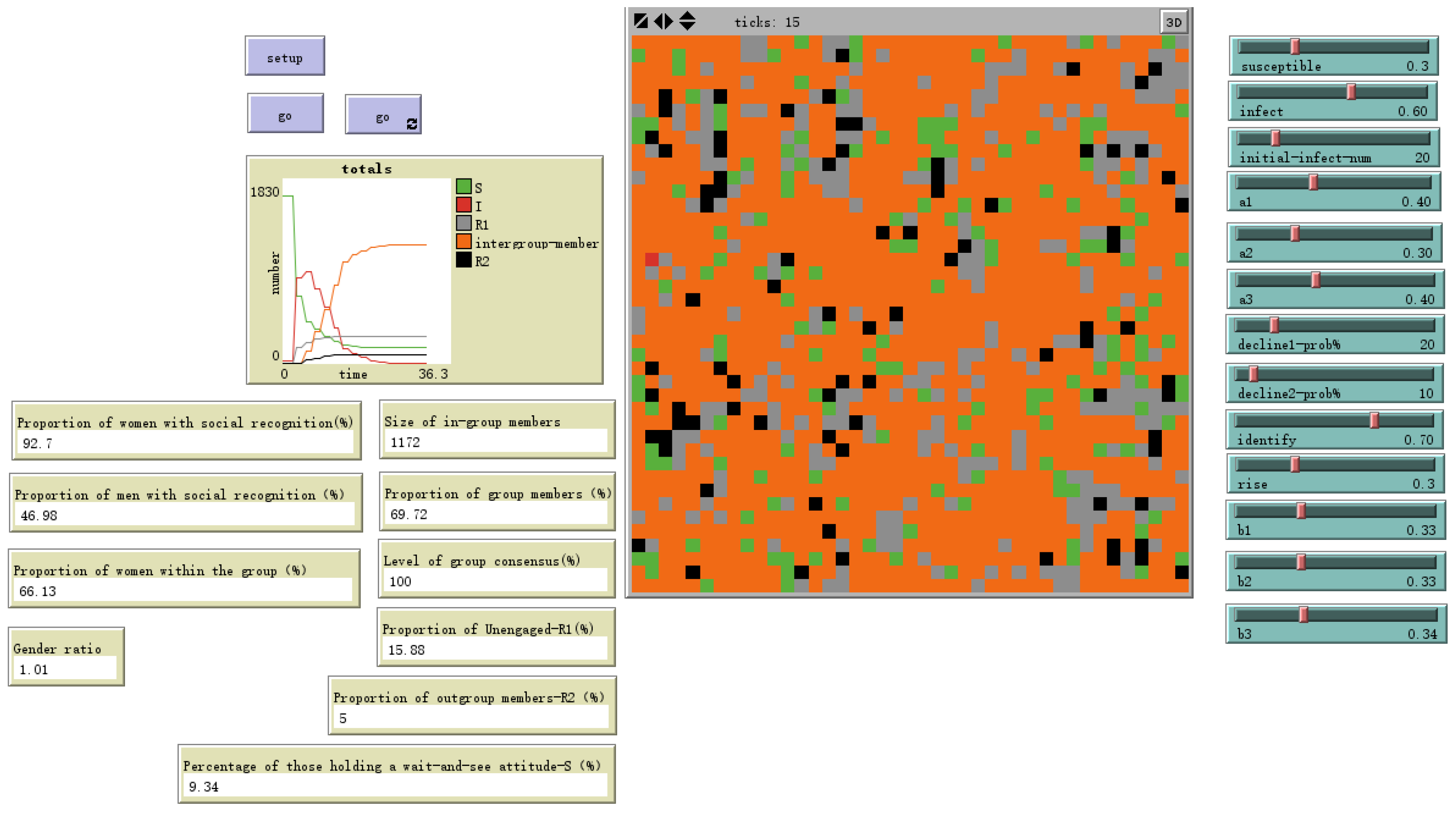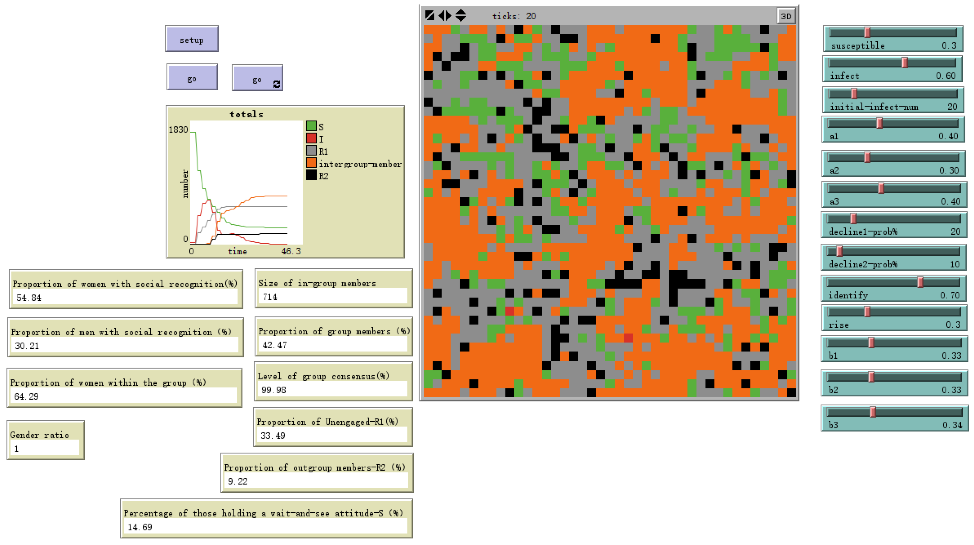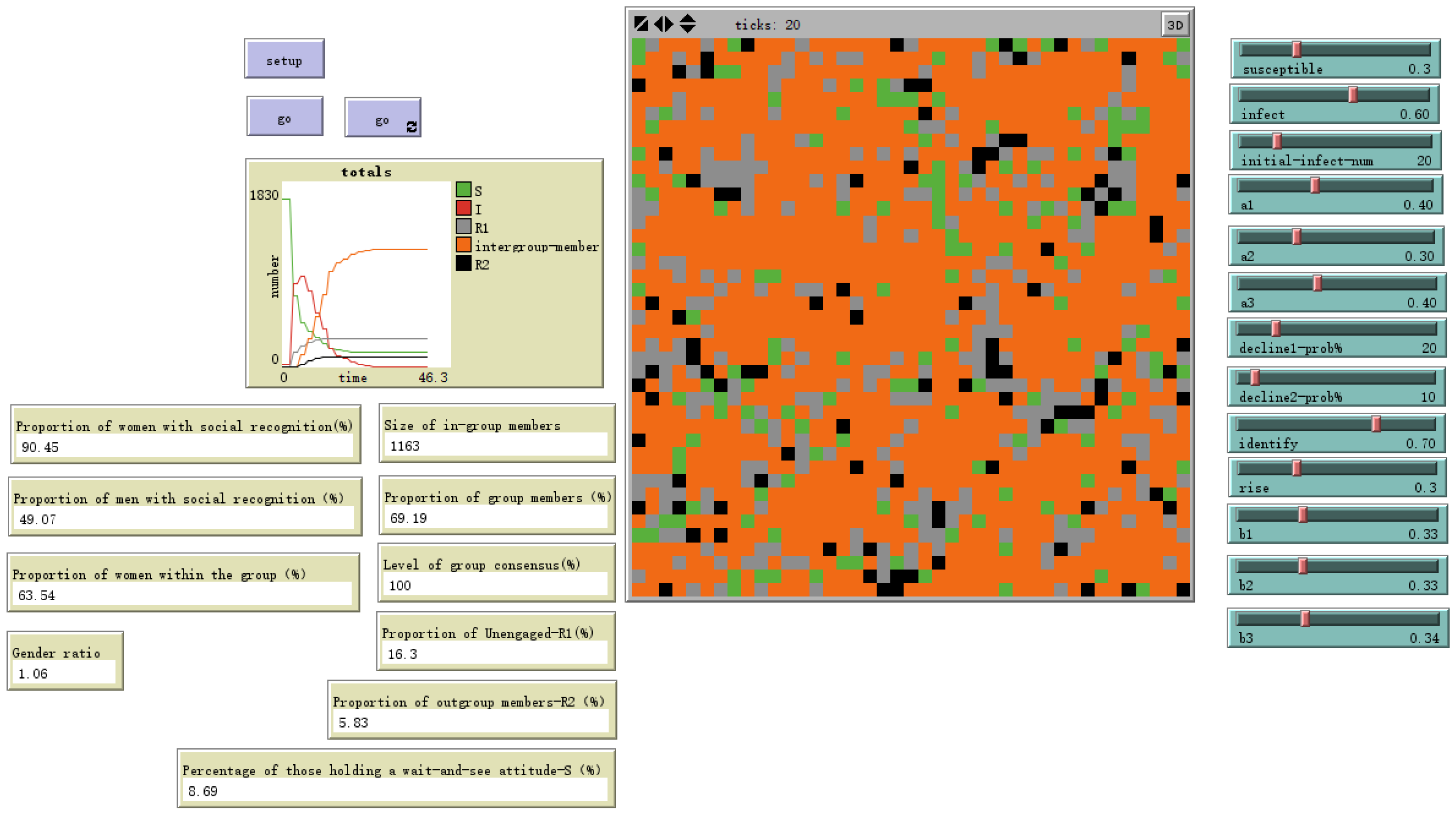 - In-group (69.72%): Individuals who develop stable social identification aligned with emerging group consensus through emotional contagion and cognitive formation processes, i.e., I-state individuals (orange tiles).