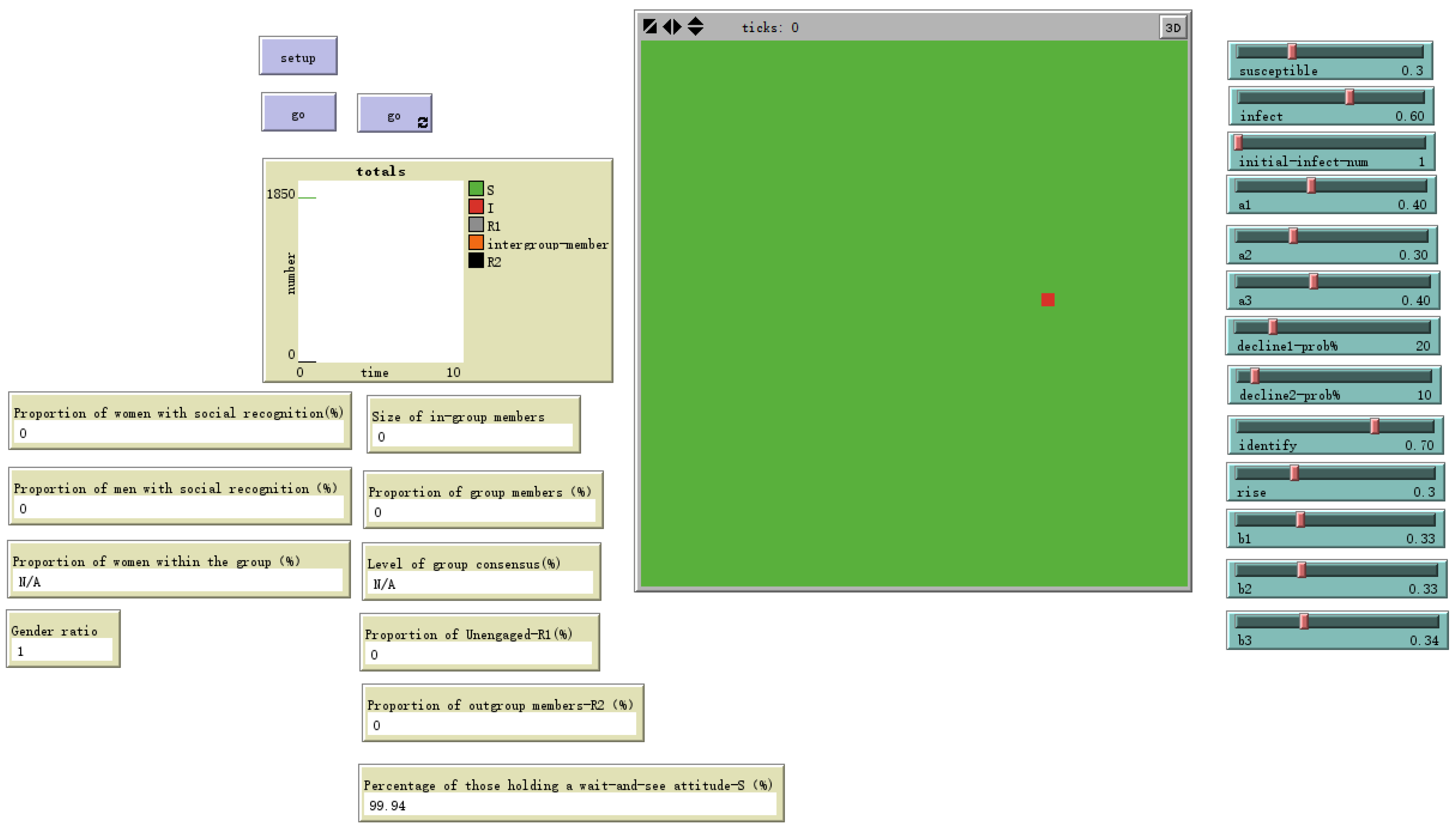 - Observers (9.34%): Individuals who exhibit some emotional response to the stimulus but have not yet formed a stable attitudinal orientation, i.e., S-state individuals (green tiles). Unlike non-participants—who achieve emotional immunity through immediate emotional decay and subsequently cease emotional contagion—observers remain susceptible to ongoing emotional contagion.