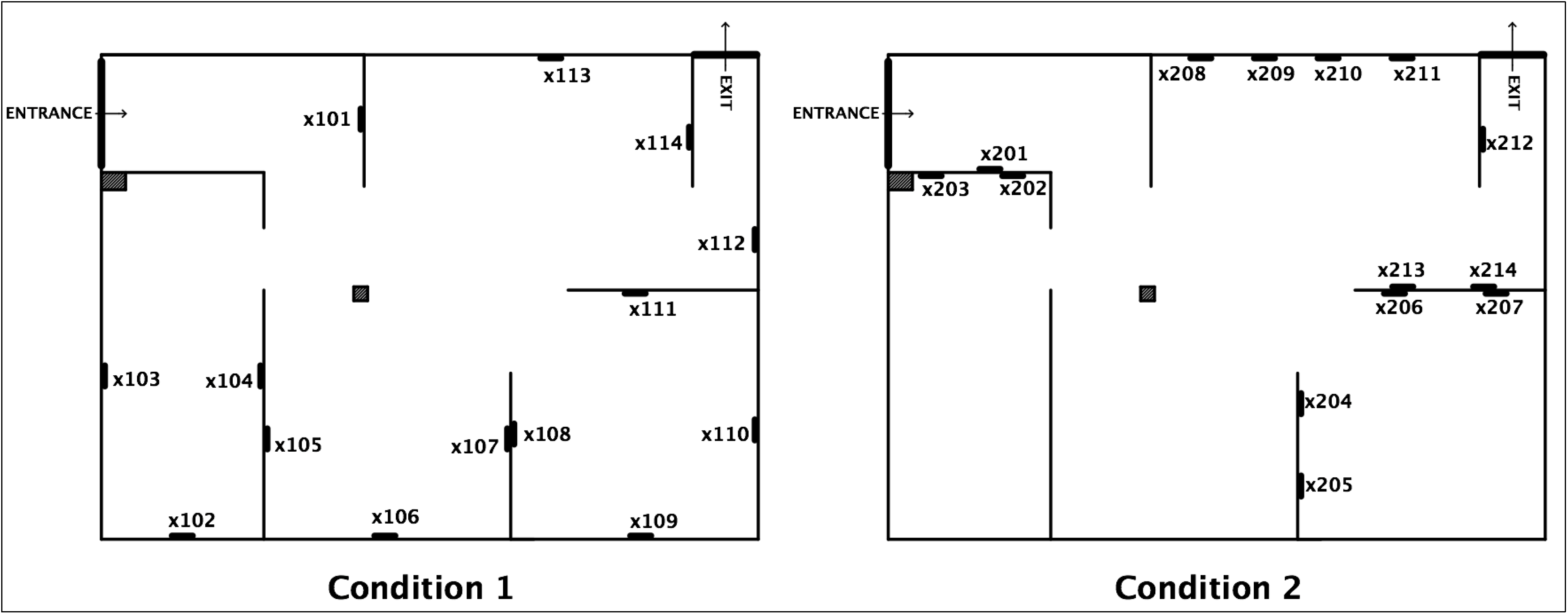 | Both Conditions jointly (locations x101-x214) | Condition 1 (locations x1.) | Condition 2 (locations x2.) | |||||||