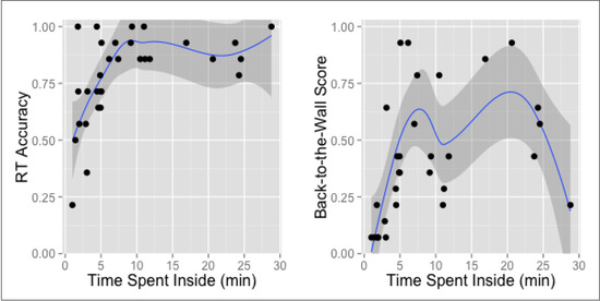 The influence of time spent inside on the personal means of RT accuracy and Back-to-the-Wall score.