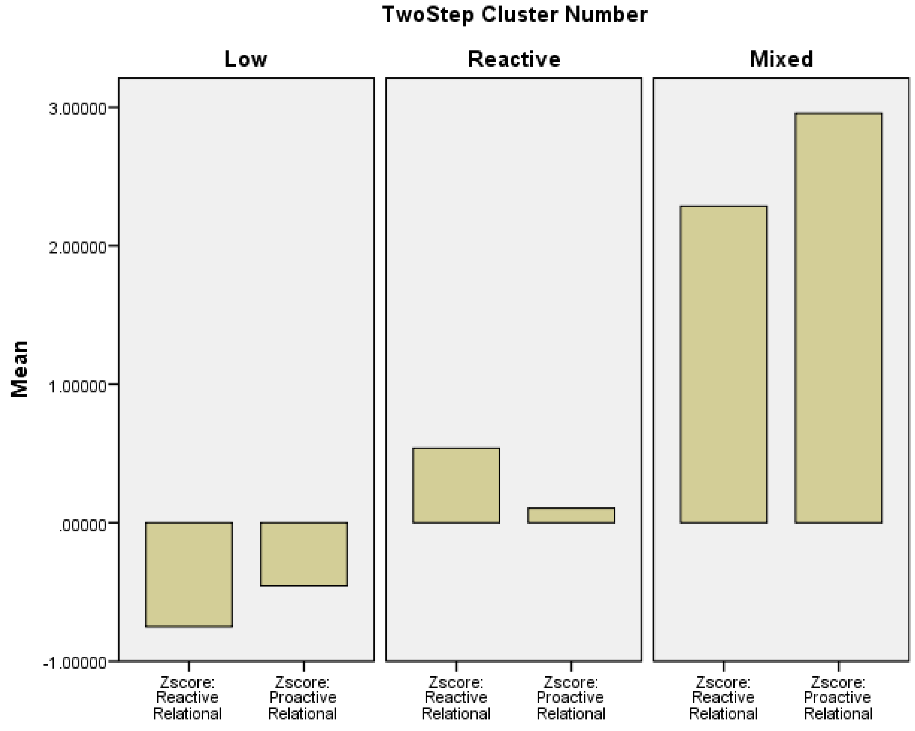 Profiles of reactive and proactive relational aggression resulting from two-step cluster analysis.
