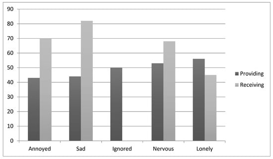 Receiving poor customer service was significantly associated with these same four emotional attributes and additionally, with feeling “ignored”. Receiving poor service was more strongly associated with the attributes “sad” and “annoyed” than was providing poor service (see also Figure 3).