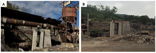 46] was in operation during the nineteenth and twentieth centuries, up to 1974. In the late seventies and eighties, the site was used for the irregular disposal of waste coming from other industries (coal mining, mechanical workshops, etc.). Thus, the legacy of the historical activities of mining, mineral and pyrometallurgical processing remained in the form of abandoned industrial installations, including shafts, mining buildings, chimneys and the roasting furnace (