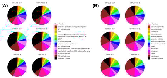 Abundance of resistance gene families (A) and drug class resistance (B).