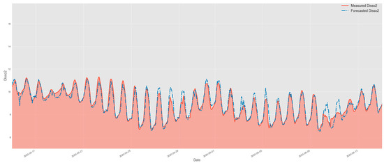 Figure 11, Figure 12 and Figure 13 show that the assessed models tend to slightly overestimate the DO values for a 6 h ahead time window. This behavior is well known in the ML community. It occurs when the forecasting parameter is too far into the future, leading to a disconnection between the input dataset and the output result. This results in average predicted outcomes [25]. Such difference can also be explained by the lack of sufficient spatiotemporal data provided to the forecasting models under scrutiny, resulting in lagged results as observed in Figure 11, Figure 12 and Figure 13 [38,87,88,89].