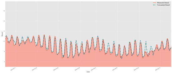 The relevant influence of the temperature attribute over the model’s result was expected. Figure 3 depicts the elevated correlation between dissolved oxygen and temperature, as elevated temperatures directly affect the oxygen solubility on the water, also contributing to the photosynthesis process and consequent oxygen concentration on the watershed. The importance of the temperature in future estimations of DO has also been studied and verified in previous works [28,42,90], attesting its significant contribution to forecasting models.