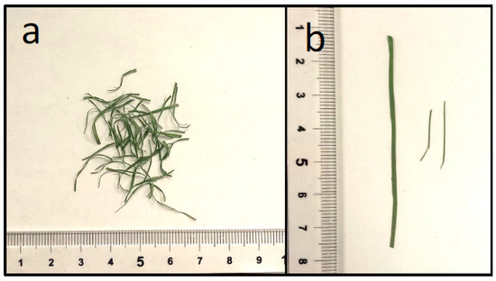 Green plastic fibers that have washed ashore have been collected from Japanese and Indian beaches during field surveys [17,23,24,25,26]. Green fibers have also been found in the alimentary canals of marine fishes [27]. The source of these fibers appears to be artificial turfs, but whether they are sports fields or private yards remains unclear. However, they have been released into the environment and turned into marine MPs.