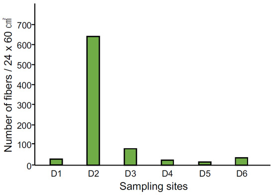 The number of fibers collected at each sampling site in the ditch (D1–D6).