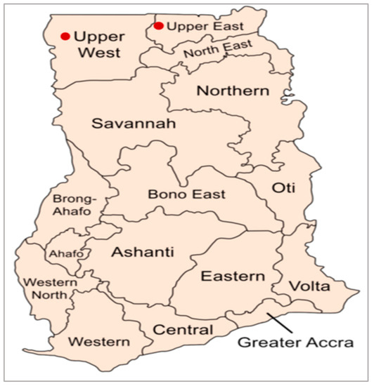 Map of Ghana showing the Upper East and Upper West regions. Source: [41].