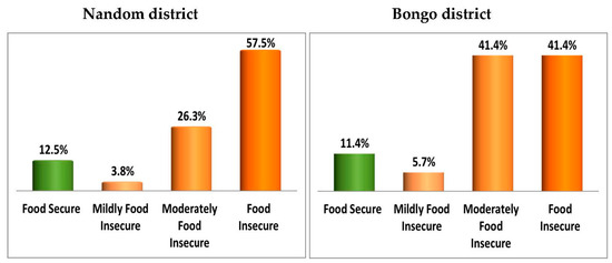 Household food insecurity access prevalence (HFIAP) in the districts.