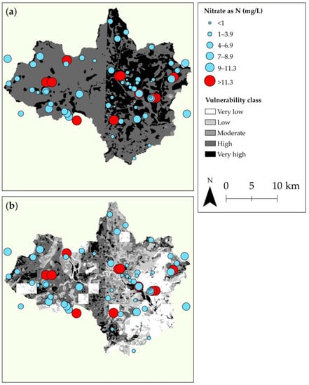 - Ball, D.F.; MacDonald, A.M.; Ó Dochartaigh, B.É.; del Rio, M.; Fitzsimons, V.; Auton, C.A.; Lilly, A. Development of a Groundwater Vulnerability Screening Methodology for the Water Framework Directive; Scotland & Northern Ireland Forum for Environmental Research (SNIFFER) Report; Edinburgh Climate Change Institute: Edinburgh, UK, 2004; Available online: https://www.sniffer.org.uk/wfd28-pdf (accessed on 20 March 2023).