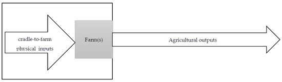 System boundaries to agricultural systems considered in the context of climate neutrality (see Figure 1) can vary. Efforts to achieve climate neutrality may exclusively refer to a farm or a set of farms (e.g., [6,11]). The term ‘farms’ here includes plantations, ranches and greenhouses for horticulture. Changes in agroecosystem carbon stocks to establish or operate farms are included within the system boundaries of farms. System boundaries exclusively encompassing farms may be considered too limited. In farming, physical inputs can be used that have been generated outside the farm. Examples of such physical inputs are machinery, water, fuels, electricity, feed, fertilizers and pesticides. The production and transport of these inputs can be associated with substantial-to-large contributions to the cradle-to-farmgate emissions of greenhouse gases (e.g., [26,27,28,29]). The term ‘farmgate’ denotes the place where agricultural outputs leave the farm. In lifecycle assessments regarding animal husbandry [27,28], substantial-to-large contributions to cradle-to-farmgate emissions of GHGs can originate in the feed acquired from outside the farm—in lifecycle assessments of plant-based agriculture, inputs of energy and synthetic fertilizers can have substantial-to-large contributions to cradle-to-farmgate emissions of GHG [26,29]. To determine the net contribution of agriculture to climate change, system boundaries may be drawn in such a way that physical inputs produced outside the farm are included in efforts to achieve climate neutrality (see Figure 1). Such cradle-to-farmgate system boundaries will be used here in assessing contributions to agricultural climate neutrality.