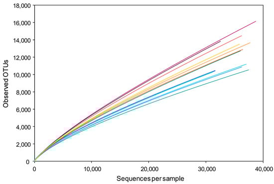 - Schloss, P.D.; Westcott, S.L.; Ryabin, T.; Hall, J.R.; Hartmann, M.; Hollister, E.B.; Lesniewski, R.A.; Oakley, B.B.; Parks, D.H.; Robinson, C.J. Introducing mothur: Open-source, platform-independent, community-supported software for describing and comparing microbial communities. Appl. Environ. Microbiol. 2009, 75, 7537–7541. [Google Scholar] [CrossRef]