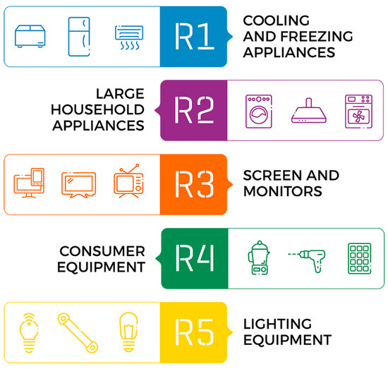 Classification of WEEE in Italy. Source: Reprinted/adapted with permission from [27]. © 2019 WEEE Coordination Centre [27].