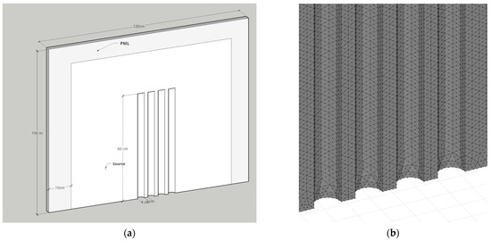 Numerical simulations were performed using the finite element method (FEM), formulated in the frequency domain, allowing us to obtain approximate, but accurate, solutions for the governing Helmholtz equation: