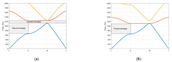 The first studies in this research topic were undertaken in 1887, by Rayleigh [14], and the first realization of these concepts was proposed by Veselago [15], in 1968, for the propagation of electromagnetic waves. Later, other studies were developed by Yablonovitch [16] and John [17], focusing on photonic crystals in metals and semiconductors, since the atoms that make up these elements are arranged in a periodic lattice and photonic band gaps are formed. The wave propagation behavior in periodic structures is described by Bloch’s theorem [18], which has been derived for electromagnetic waves in perfect crystals. The solution of the Bloch wave for a periodic potential leads to the formation of bands of allowed and forbidden energy regions, i.e., the band gaps. The same principle can be extended and applied to sound waves as they propagate through periodic structures. When the acoustic waves interact with periodic structures, bands of frequencies are formed, where waves can pass through the structure without too much attenuation, while in other ranges of frequencies waves are greatly reduced. This leads to a significant attenuation of sound levels in selected frequency bands.
