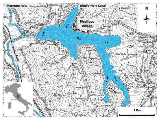 - Umbria Regional Agency for Environmental Protection (ARPA Umbria). Monografia15/Caratterizzazione Ambientale del Lago di Piediluco. 2005. Available online: https://www.arpa.umbria.it/au/pta/monografie/MONOGRAFIA%2015.pdf (accessed on 30 January 2023).