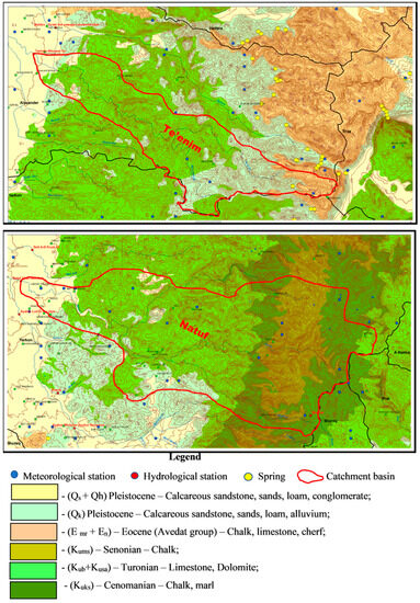 13]. At the assessed average annual rainfall values of 0.59 m and 0.55 m, the estimates of the groundwater recharge for the Te’enim and Natuf hydrological basins within the WMA outcrops are 0.59 × 0.34 × 72.7 × 10