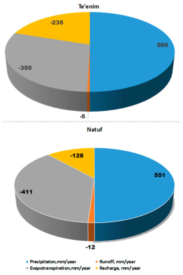 Table 3), respectively. The average multiannual evapotranspiration normalized according to catchment basin areas varies from 350 mm for the Te’enim catchment to 411 mm for the Natuf catchment.