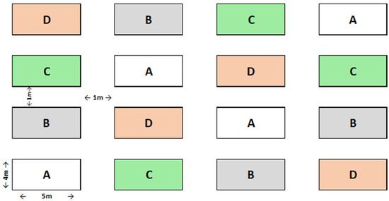 Schematic layout of the experimental randomized complete block design in the field. The four different sampling depths were: 0 to 20 cm (Layer A), 20 to 40 cm (Layer B), 40 to 60 cm (Layer C), and 60 to 80 cm (Layer D).