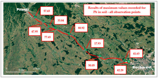 It was observed that the maximum value of the lead content in the soil was recorded at OP 3, located on along the A1 highway in the Bucharest to Pitesti direction. The elevated content of lead in the soil is explained by the long period of operation of this highway, especially long periods of time in which leaded gasoline was used. The normal value of the national legislation was exceeded, namely with the value of 20 mg/kg d.m. in eight of the nine observation points, which reinforces that the possible source of lead in the soil was emissions from motor vehicles as a result of the use of leaded gasoline.