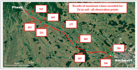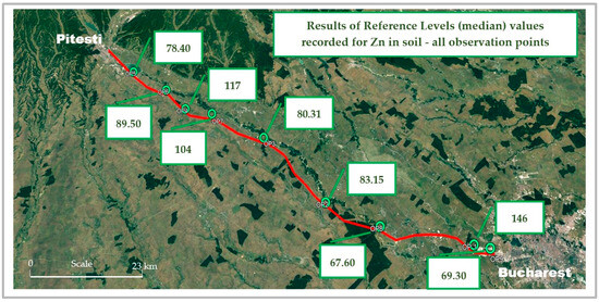It was observed that for the vast majority of reference points, the median values were within the limit of the normal values. Only in three out of nine observation points were the normal values exceeded, without any other exceeding the alert threshold. The large differences in concentrations from the points in the vicinity of the A1 and up to only 60 m away from it suggest that the source of the recorded zinc concentrations is the road traffic on the highway and the long duration of circulation on it.