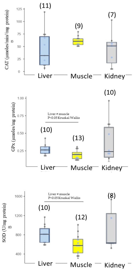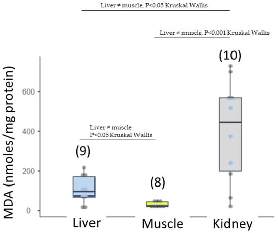 | Kidney | Liver | Muscle | ANOVA | Homogeneity of Variances Test (Levene’s) | Normality Test (Shapiro–Wilk) | |