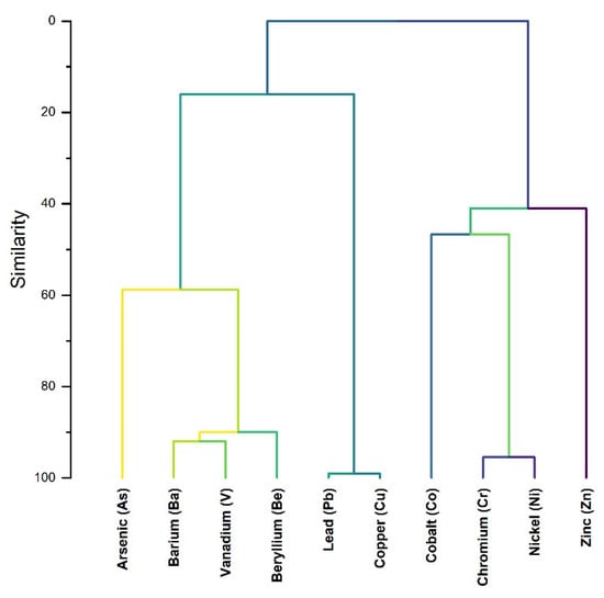 3.4. Clustering of PTEs and Locations Based on Similarity