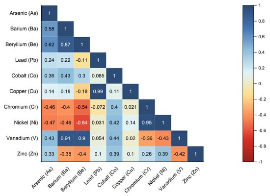 Soils of urban areas can be extensively exposed to PTEs because of several industrial and commercial activities, such as those related to metallurgy, mining, fossil fuels, vehicular traffic, and waste materials [5]. However, urban soils are not differentiated from other soils while framing regulatory guidelines. Thus, the regulatory limits for PTE concentrations may not be appropriate for urban soils. To overcome this limitation and to identify the hotspot soils, Serrani et al. [5] proposed a dynamic “threshold of attention” for each PTE that was obtained by adding one-half of the standard deviation to the arithmetic mean for that PTE in various study samples.