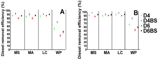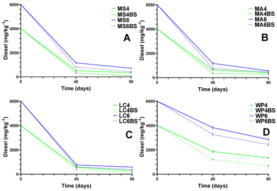 - Barrutia, O.; Garbisu, C.; Epelde, L.; Sampedro, M.C.; Goicolea, M.A.; Becerril, J.M. Plant tolerance to diesel minimizes its impact on soil microbial characteristics during rhizoremediation of diesel-contaminated soils. Sci. Total Environ. 2011, 409, 4087–4093. [Google Scholar] [CrossRef]