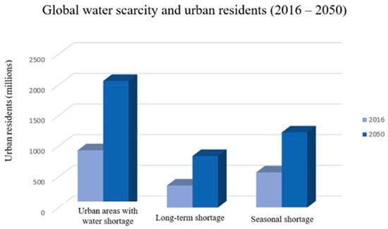 Urban citizens that live under water shortage conditions (2016–prediction 2050) [7].