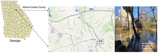 Overview map of the study area and sampling sites, featuring representative images of Firefly Trail (FT), located in Athens, Georgia, USA.