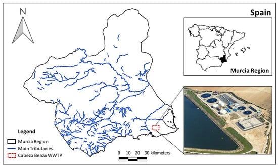 - ESAMUR. Estación Depuradora de Aguas Residuales CABEZO BEAZA (CARTAGENA). Available online: https://www.esamur.com/esamur/edar/16A (accessed on 10 February 2024).