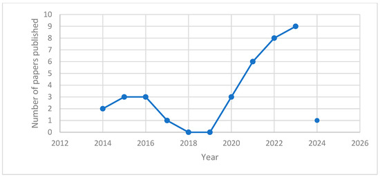 Number of papers published by year (Year 2024 was not considered in the graph line as it only had 2 months of analysis).