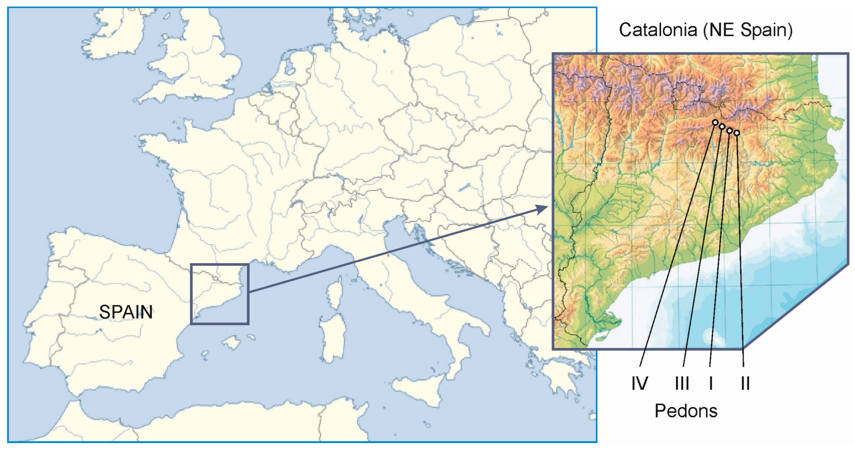- Poch, R.M.; Simó, I.; Boixadera, J. Itinerario por la comarca de La Cerdanya. In Itinerarios Edáficos por Cataluña: El Priorat, la Cerdanya y el Penedès; Alcañiz, J.M., Ed.; Institut Geològic de Catalunya, Dept de Territori i Sostenibilitat. Generalitat de Catalunya: Barcelona, Spain, 2011; pp. 124–158. [Google Scholar]
