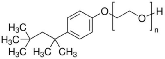 The molecular structure of Triton X-100 [Formula: C14H22O(C2H4O)n (n = 9–10)].