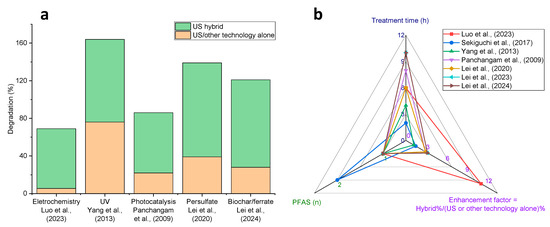 - Lei, Y.; Zhao, L.; Fang, C.; Naidu, R.; Tian, D.; Zhao, L.; Huang, M.; He, J.; Cheng, Z.; Zeng, Z.; et al. A novel enhanced defluorination of perfluorooctanoic acids by surfactant-assisted ultrasound coupling persulfate. Sep. Purif. Technol. 2023, 317, 123906. [Google Scholar] [CrossRef]
