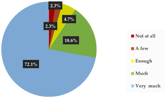 When asked “Do you agree with the statement: ‘Improving the air quality of cities and reducing harmful emissions to combat climate change are two priorities for protecting the environment and public health’?”, approximately 91.0% of the subjects answered “much” and “very much” in accordance (Figure 6). These figures highlight the awareness of the surveyed sample concerning environmental problems.