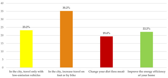 Frequency (%) of answers to the question “Which of the following measures would you be willing to take to reduce air pollution and promote a healthy lifestyle?”.