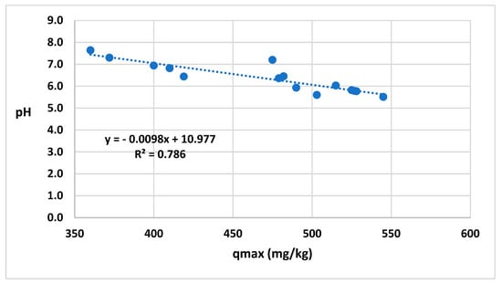 The relationship between the soils’ pH and the sorption maxima of all the sampled soils is reported in Figure 5.