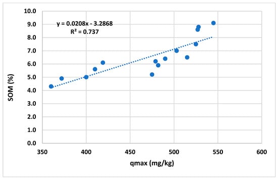 Relationship between the SOM content and sorption maxima of all the sampled soils.