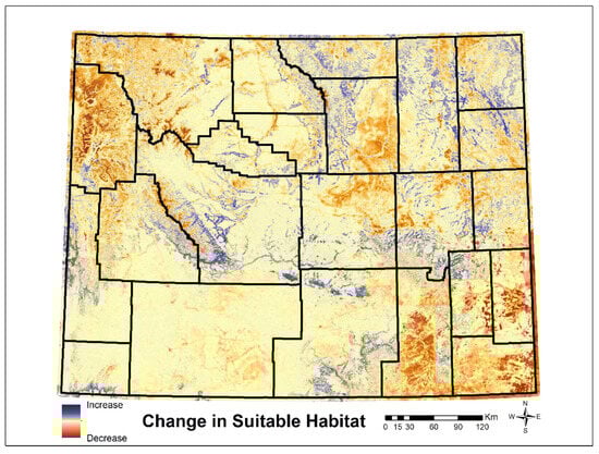 3.4. Changes in Predicted Suitable Habitat