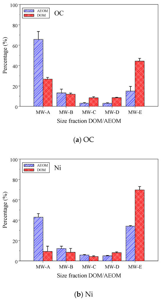 The mass percentage of size-fraction DOM and AEOM (a) OC, and (b) Ni.