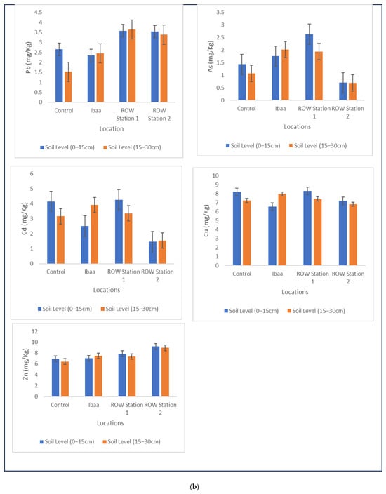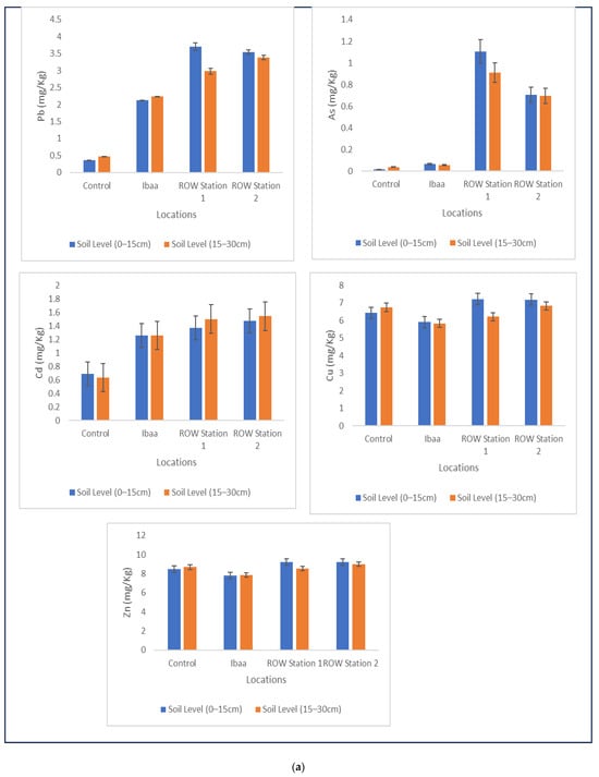 Industrialization and diverse anthropogenic activities including crude oil exploration have left an indelible imprint on global soil pollution [,,]. It has been erroneously believed that the primary soil contamination sources are anthropogenic and may be accompanied by contaminant accumulation in the soil, which may attain levels of public concern []. Soil pollution has been identified as the ninth most important threat to soil functions in sub-Saharan Africa []. Consequently, heavy metal soil pollution has become an important issue of public concern with respect to farm produce [,]. Diverse studies have enumerated sundry causes of pollution as follows: PTEs are soil pollutants since human cycle rates are faster than natural and are mobile in soil [,].