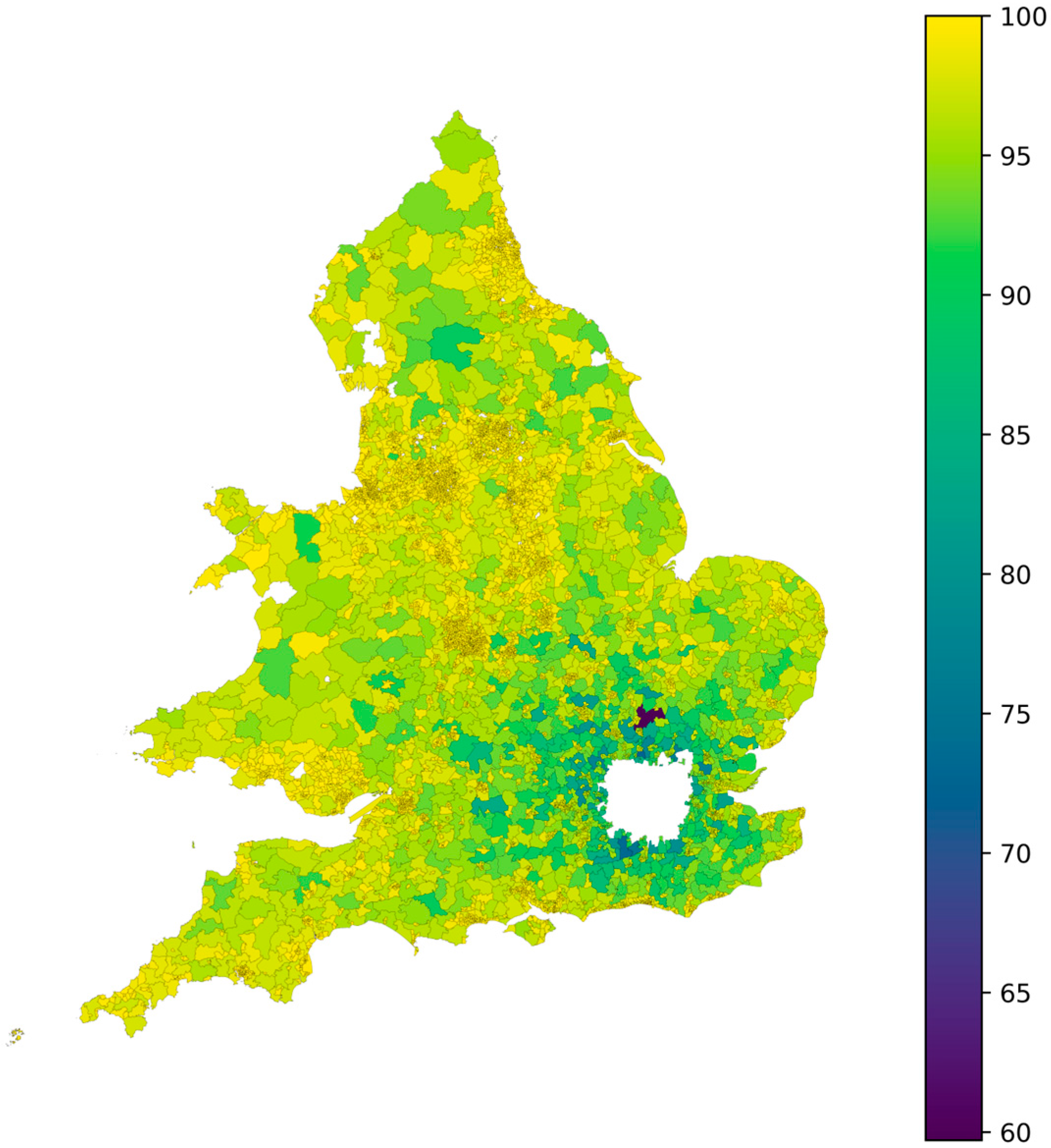 Schnieder, M. Visualising the Environmental Effects of Working near Home: Remote Working Hubs and Co-Working Spaces in England and Wales. Environments 2025, 12, 375. https://doi.org/10.3390/environments12100375