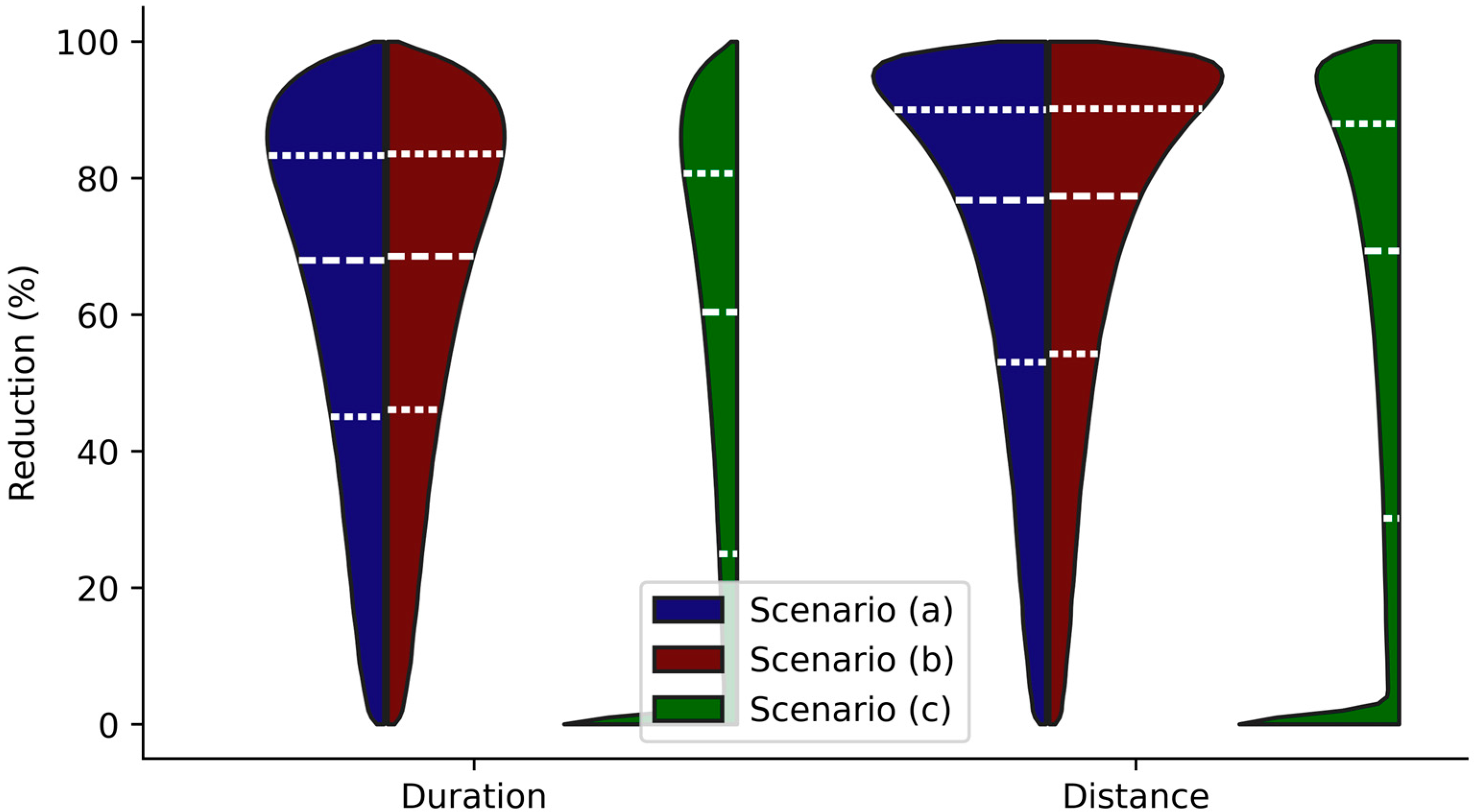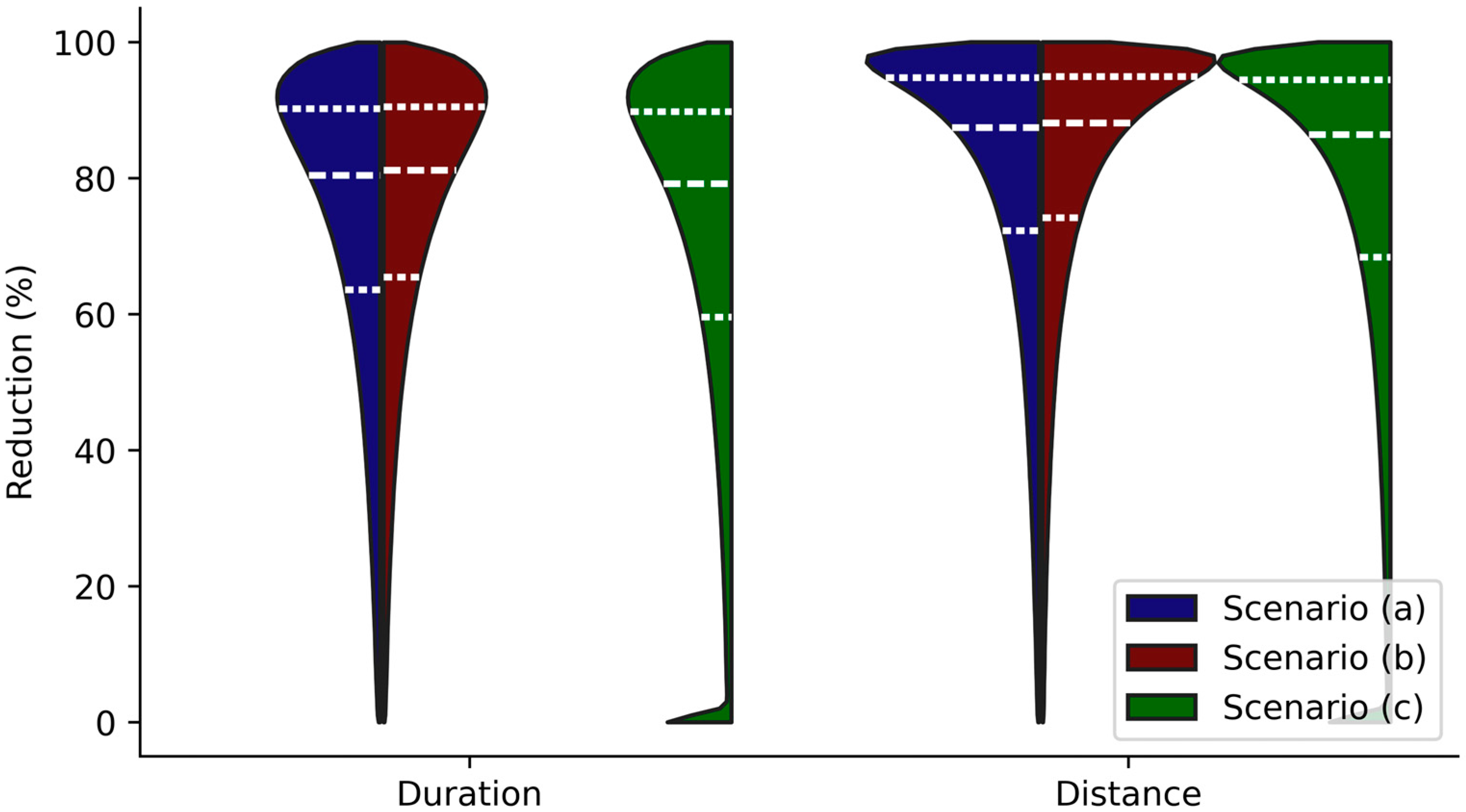 Scenario | Duration (%) | Distance (%) | Share of People Removed (%) |