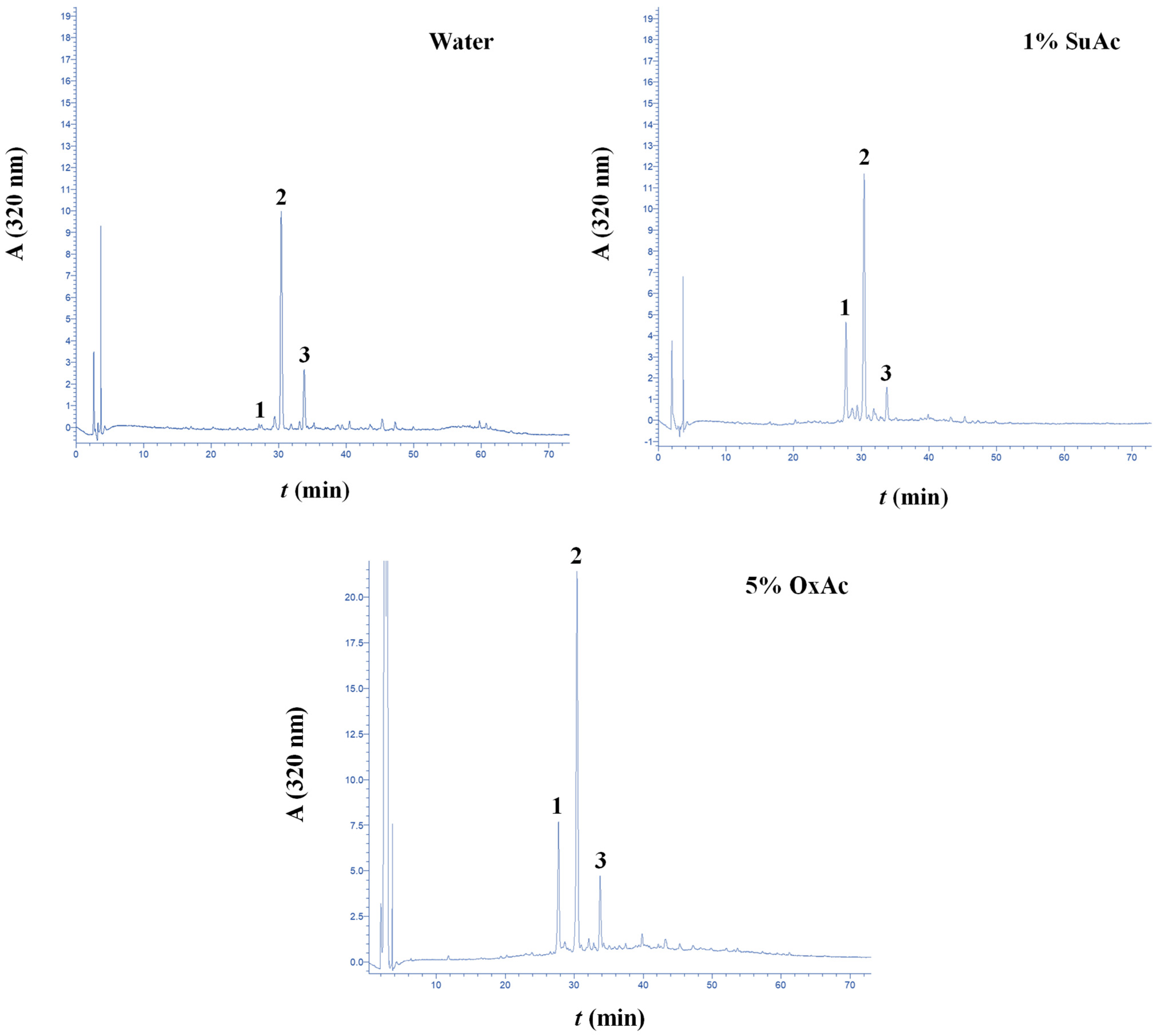 3.4. Treatment Effect on the Polyphenolic Composition