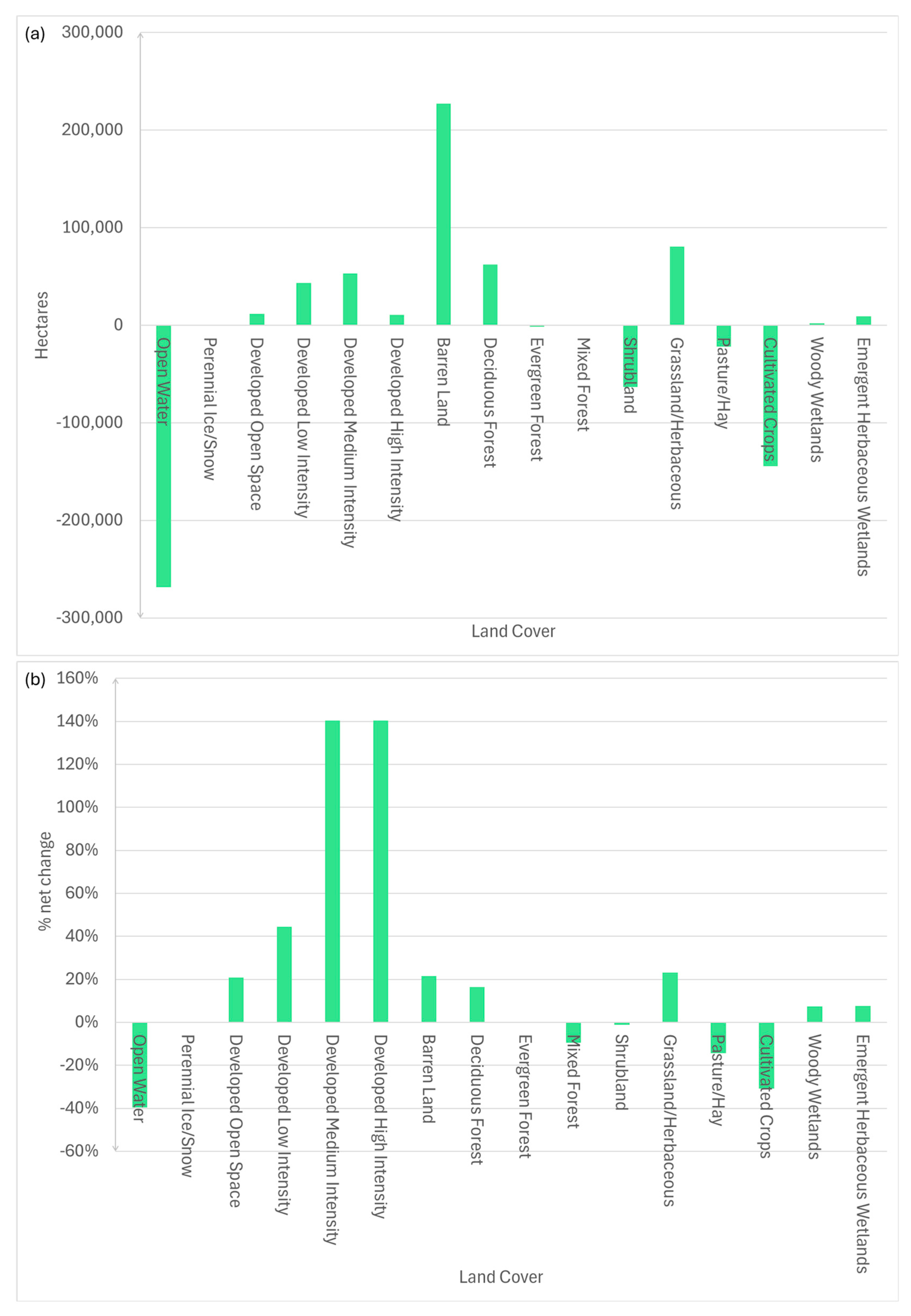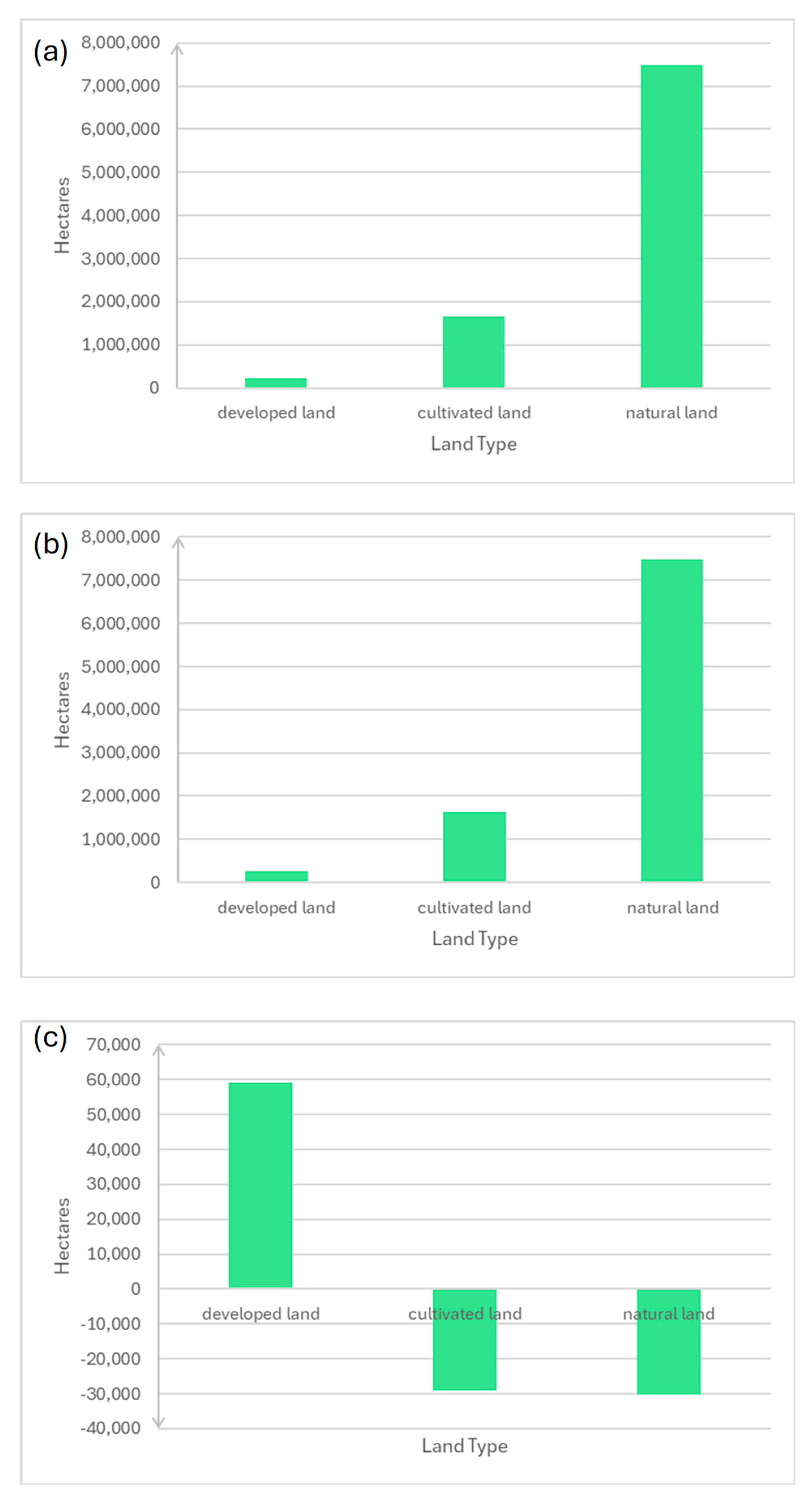 3.2. Changes in Land Use Based on Landsat National Land Cover Dataset
