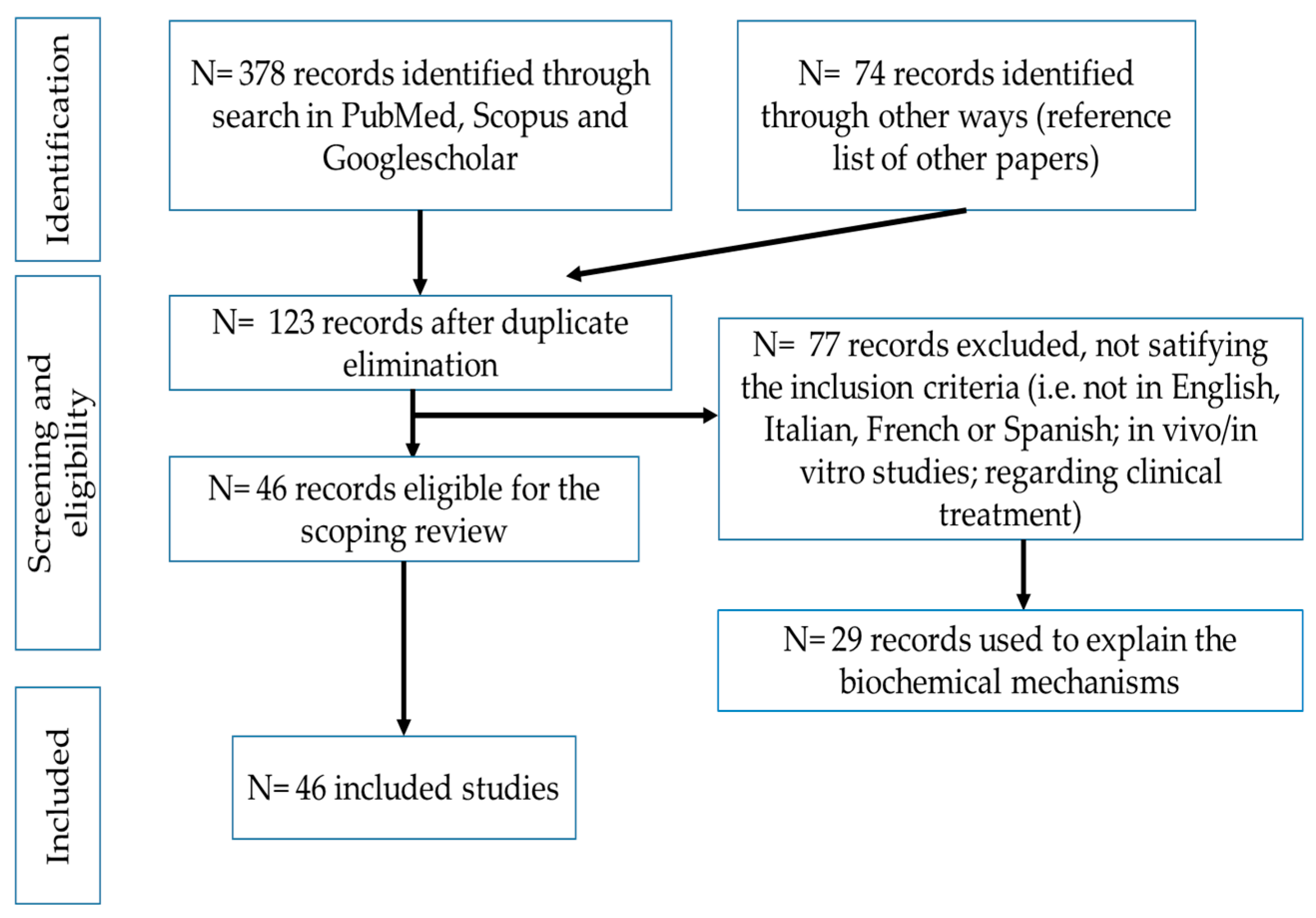 - Tricco, A.C.; Lillie, E.; Zarin, W.; O’Brien, K.K.; Colquhoun, H.; Levac, D.; Moher, D.; Peters, M.D.; Horsley, T.; Weeks, L.; et al. PRISMA extension for scoping reviews (PRISMA-ScR): Checklist and explanation. Ann. Intern. Med. 2018, 169, 467–473. [Google Scholar] [CrossRef]