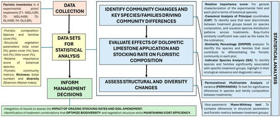 The processing and analysis of pasture data comprised several stages, ranging from data collection, dataset preparation, statistical analysis, to output of practical management decisions, which are schematically presented in Figure 4.